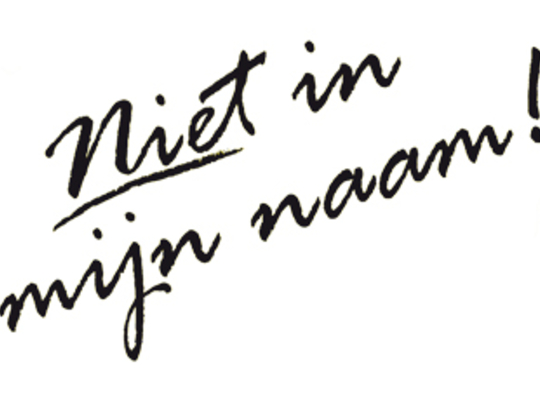 Onder de slogan 'Niet in mijn naam!' voert de VVB een campagne tegen deze gang van zaken.